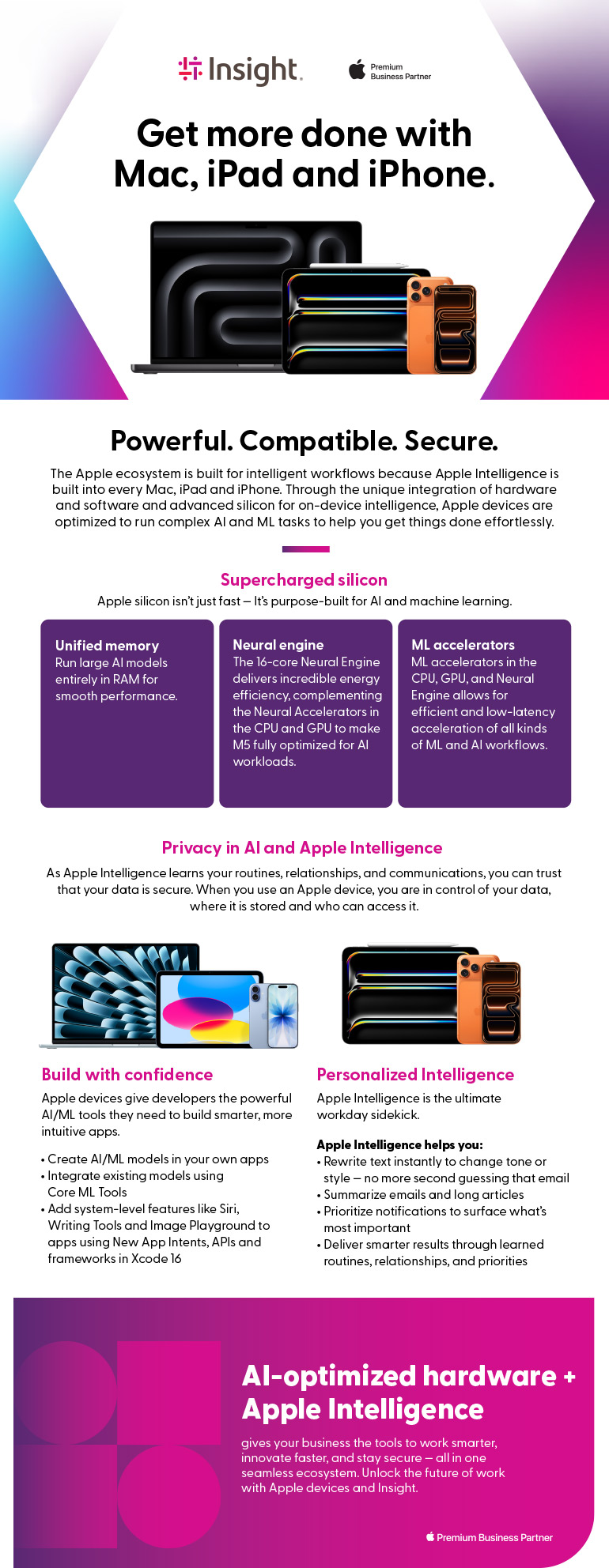 AI-optimized hardware + Apple Intelligence gives your business the tools to work smarter, innovate faster, and stay secure — all in one seamless ecosystem. Unlock the future of work with Apple devices and Insight.